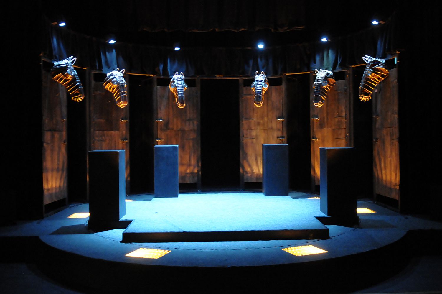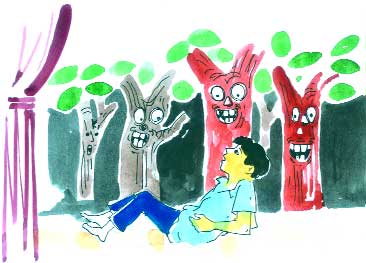 হুসনে মোবারক প্রথম দৃশ্য অন্ধকার মঞ্চ ধীরে ধীরে আলোতে ভেসে উঠলে দেখা যাবে অনেক ধরনের গাছ দুলছে।....